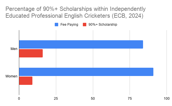 The ECB ICEC Progress Update (Sept 2024) states that only 16% of men & 9% of women independently educated professional English cricketers received scholarships.